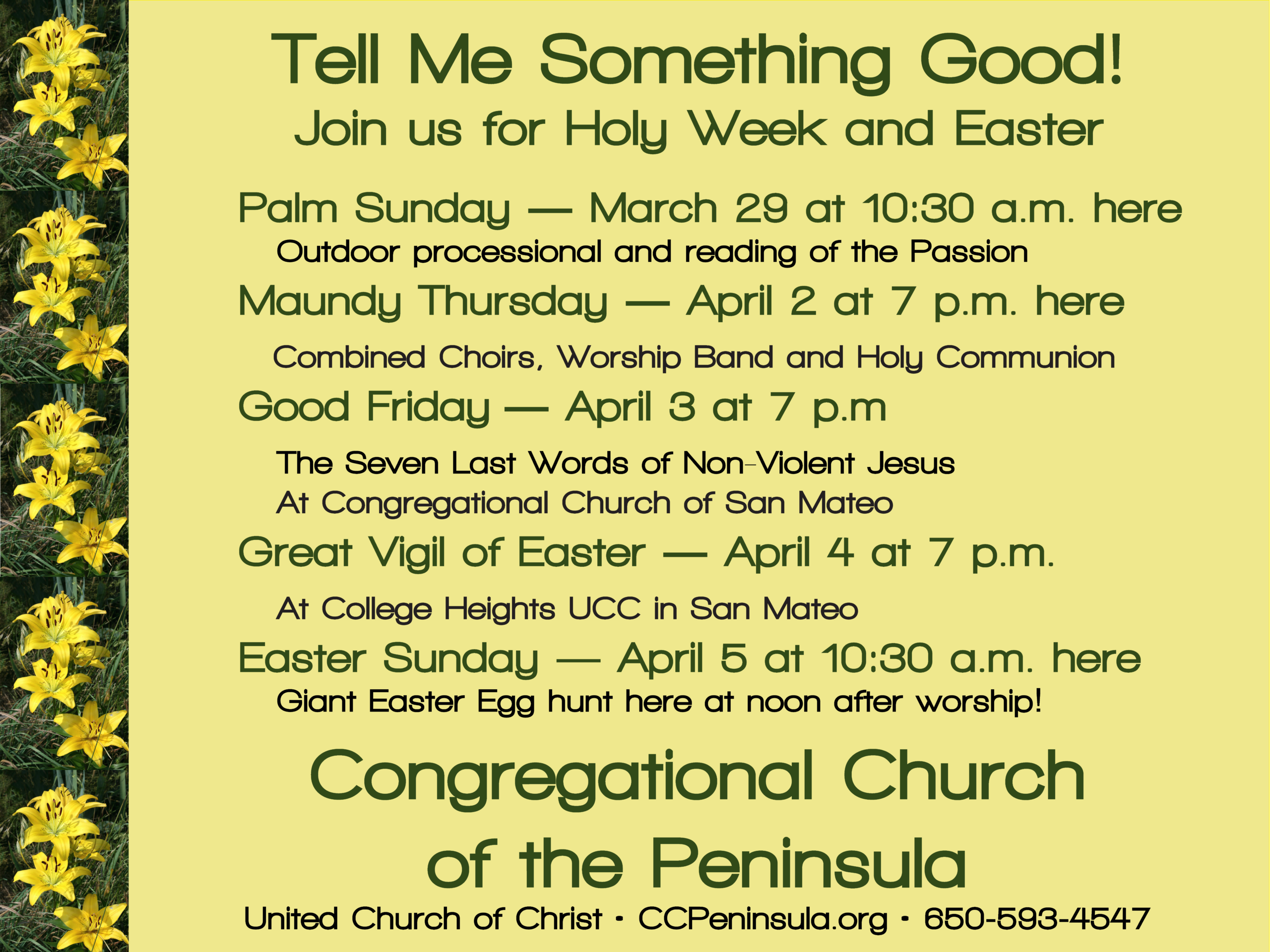 The Congregational Church of the Peninsula, created from the merger of the Congregational Church of Belmont and First Congregational Church of Redwood City, came together for worship on July 30, 2023, as one beloved community. The Rev. Dr. Davena Jones, Northern California Nevada Conference Minister, received the new church into membership of the United Church of Christ and the conference and Yolanda Austin welcomed it into the Golden Gate Conference. After worship, members gathered in the Dining Room to share a cake with “Congregational Church of the Peninsula” written out in icing and get to know each other in fellowship.